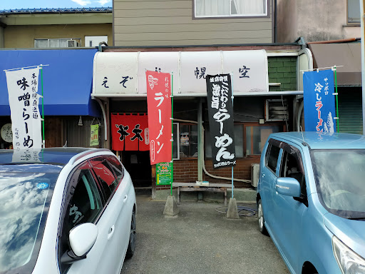 Read more札幌ラーメンに目がない私は以前から気になっていたラーメン屋さん 『えぞ』と言う店名と西山製麺の幟からして期待が持てる。 営業時間が10:30~15:00までと短いので訪問する時は要注意 車は店の前に3台程停める事が出来る。 訪問したのは平日の13:00頃 カウンターだけの店内は昭和時代を彷彿させる良い感じ。 女性一人で切り盛りしている模様 メニューは醤油・味噌・塩とチャーシュー麵のみ まずはやっぱり味噌だろうと味噌ラーメンをオーダー 5分程で着丼 味噌ラーメンというとよく味噌の濃いスープを提供する店があるが、ここのスープは濃くも薄くもなくとてもまろやか 麺は西山製麺独特の卵ちじれ麺で、コシがあって美味い。 たっぷりの野菜もこれまた食べ応えがある。 いかんいかんと思いながらもスープも全部飲み干した。 家系や二郎などとは違う由緒正しいラーメンがここにはあった。 札幌ラーメンが好きな人...