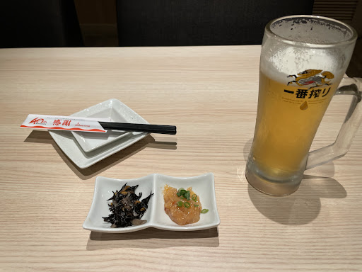ルートインに宿泊しているとワンドリンクサービスのチラシがあった。平日の月から木の17〜19時は生ビール・ハイボールが半額ということで訪れてみた。居酒屋エリアと焼肉エリアがあり、居酒屋を選択。18時半に入店したが、だんだん人が入って来て、店側のレスポンスが悪くなって来た。ちょっと用が出来たが、まだ時間があったので、〆のネギトロ巻きを頼んだが、一向に出てこない。店員さんを呼んでもなかなか対応してくれない。やっと来てくれたが、まだネギトロ巻が来てない事を伝えると混乱しているみたいなので、キャンセルして、会計してもらった。ハーフサイズのメニューもあり、お酒の種類も多く、タブレットによる注文システムで使い勝手もいいが、味は普通だが、久しぶりに食べたホッケは、や◯い軒のしまホッケのほうが数倍美味しかった。次はあっ...