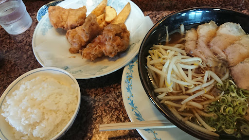 Read more栗東市役所の近くで営業されているラーメン屋さんです(゚∀゚*) メインは屋号とおなじ『ドラゴンラーメン』ドラゴンラーメンとは簡単に言えばホルモンミックスの野菜炒めが辛いラーメンの上に乗っていると思えばよいかと。(ФωФ) アチキ自身、あまり辛いラーメンは苦手ですので今回は『チャーシュー麺(醤油)』に唐揚げセットを注文。 チャーシュー麺の方は良くも悪くも安定のラーメン。スープはちょっと薄めに感じました。(ФωФ) 麺は短めで食べやすい麺でした。 チャーシューは薄切りで赤身が多めのタイプ。もう少し肉感が感じられれば良かったかなと感じたなぁ。 ただラーメンの上に乗っているもやしが提供前に炒めて乗せるのでも熱々のもやしが旨い!(ノ゚∀゚)ノ 唐揚げはもも肉でカラッと上がった唐揚げからの肉汁が溢れてなかなか美味。 しかしながら駐車場が2台~3台くらいしか停められないので駐車場が無い場合は市役所横の駐車場等に停めて歩いて行くしかない状況です。一度お店の方に聞いてみるのがよいかと思います。 今度はドラゴンラーメン、挑戦してみるか・・・(*´・д・) ごちそう...