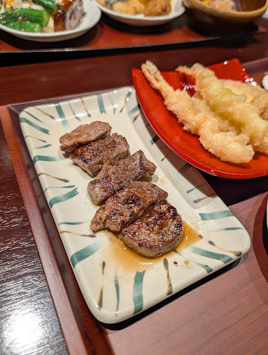 ②牛肉鉄板焼き 星野リゾート名物(?)と言うべきなのか、これまでOMO関西空港やOMO7大阪、磐梯山のビュッフェでも食べた美味しい牛肉です! このお肉と再会できたことに感謝!! 毎回思うけどやっぱり美味しい(^^) ステーキソースも良いけど、鮪の漬けまんまで食べた薬味と合わせても美味しかった!