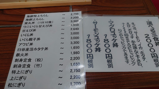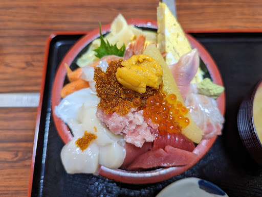 週末の11時過ぎに行ってきました。お店に入る時は空席があり、すんなり入れましたが、食事を終えて出る頃には行列ができていました。次から次へとどんどんお客さんが来るので、駐車場に停められず路駐している人もいました。 これだけ人気があるのは、新鮮で美味しい海鮮ちらし(味噌汁付き)が2000円から3500...