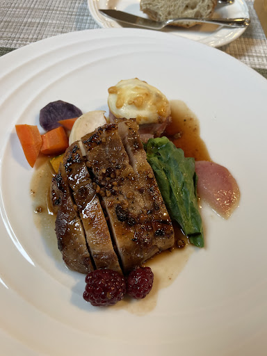 Read more結婚5周年記念で来店しました。✨ まず、お店のドア把手がオシャレだなー!と思いました。 エントランスを抜けると吹き抜けの高い天井で開放感があり、清々しい気分になりました。 席に着くや否やホールの女性の方が粋な計らいの言葉をかけてくれました。嬉しかったです! メインの肉料理は、豚肉料理と鶏肉料理が基本だそうですが、別料金で、サーロインステーキに変更できるので、こちらの方がおすすめです。 料理全般的に野菜が豊富なので、健康的なフレンチって感じで盛り付けも洒落ていました。 会計時、シェフ自らも見送って頂きました。 また、記念日に...
