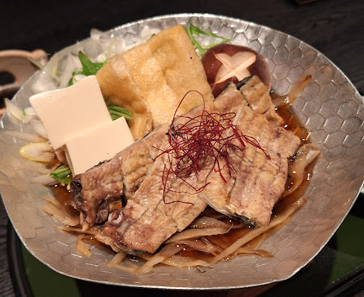 2025.01.24 【うなぎオイル漬け】1260円 にんにくとオリーブオイルかな?にんにくが効いててうなぎとよく合い他では食べられない面白い具合。つまみっぽい。 【うなぎ鍋】3620円 ごぼうの風味のつゆが想像以上に合う。うなぎがジューシー濃厚でうまい。煮込んだうなぎもこんなにうまくなるのかと改めて驚く。以前は柚子胡椒があったのだがやめたのかな? 【肝焼】1000円 なかなかいい感じだがちょびっとクセが残ってたかな。 【ノンアルコールビールフロート】 まさかのノンアルコールビールにアイス。意外といい感じの相性で自然に飲める。これならビール苦手な人でも飲めるかも。でも料理には合わないw 【総評】 相変わらずいろいろな食べ方でうなぎが食べられる珍しい所。鍋は他であっても良さそうな想像以上のうまさ。柚子胡椒復活してほしい。