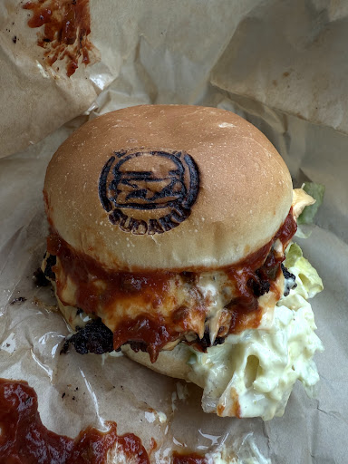 Read moreこの日は前夜からのしっかりした雨で仕事作業が午後からになってしまいました。 午前中は営業所により10時位には現場に向けて出発 少し早めのランチをとることにしました。 せっかく湖東に来たんだからやっぱり近江牛を食べなきゃ始まらんでしょー笑笑 竜王の三井アウトレットパーク滋賀竜王のすぐ近く近江牛を使ったハンバーガー店があるのを発見! その名も『近江牛バーガー SUDAKU』さん 滋賀県はもとより大阪、京都始め関東圏にも近江牛を使った『近江焼肉 すだく』として展開されていてフランチャイズ店も含めると北は北海道から南は沖縄そして海外店もあり手広く近江牛を広めておられる人気の近江牛取扱店のひとつとして竜王の地でバーガー店をされています。 駐車場にデカいバーガーのモニュメントがあり黄色地に黒文字で100%OMI BEEF BURGER...