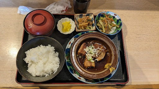 Read more平日の昼食時に訪問。店内はほぼ満席。男性客ばかりで皆さん黙々と食べられています。ウェイターは女性の方一人なので、忙しそうでしばらく放置状態。とりあえず、空いているカウンターに座って、メニューを物色。配膳に来られた際に角煮定食をオーダー。混んでいて時間がかかるかと思いましたが、10分ほどで出てきました。 角煮は柔らかいのが3つ。美味しいです。小鉢が2つついて、お味噌汁かと思ったら、粕汁がついていました。こういうのは、嬉しいですね。ご飯はおかわり無料みたいです。懐かしい感じの美味しい定食屋さんといった味です。 1時までは混み込みでしたが、1時を過ぎると近所で働いている方が帰るのか、一気...