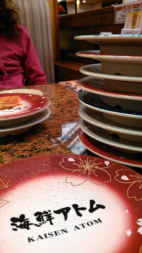 What I love about kaiten sushi is I just get sushi casually and as much as I want. Sometime just only 3 plates are enough. This 海鮮アトム serve free miso soup weekdays as lunch time service that's pretty awesome. This location is a bit smaller than other location but I felt it's perfect size since they...