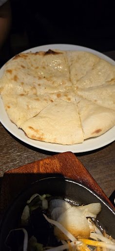 チーズナンは見た目はmサイズのピザくらいで食べきれそうだなと思いながら食べ進めました。 噛むとチーズがcmのように伸びておもわず1人で笑ってしまいました。 味はチーズと他の甘さがあるような感じで辛いカレーに合いそうでした。 チキンカレーの辛さはミディアムにしました。 辛いのはあまり得意じゃないのですが、次回食べるときは一つ上の辛さでもいいかなっていうかんじの辛さでした。