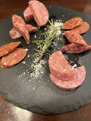 Read more2025/4訪問 今年のGWも佐渡。 11連休の初日の夜に出発し、日曜日の朝一の便で佐渡入り。 6泊7日の4日目の昼食です。 敷地内にジェラート屋さんがあり、以前にも利用し美味しかったので、ジェラートを食べに行きました。 対応して下さった男性が、「ランチもやっています」と。 内容に惹かれましたがジェラートを頼んでしまったので、どうしようか迷いながらも、30分後くらいにまた来ますと予約を入れました。 連休の間の平日だったので、レストランには私達だけ。 1800円のセットのみと言う事で、まずはサラダと軟らかいタイプのバゲット。 サラダに入っていたレバーペーストがとっても美味しい。 レバーは絶対に口にしない、焼き肉のときも、レバーは絶対に俺のテリトリーでは焼くなと言う位にレバーが苦手な主人が、本当に大丈夫だから食べてみてと、私の圧に負けて一口。 「あっ、美味しい」と。 これでビール飲まないなんてあり得ないと言う事で、ビールを頼みました。(私だけ) 続いて出てきたソーセージなどの盛り合わせ。 ソーセージ3種とたまとろサラミ、田舎パテ、ハムとスモーク生ハム。(おいしそうで写真忘れました) ソーセージやサラミはスーパーでも売っているので、これまでにも何度か購入し食べていますが、パテとハム類は初めて。 田舎パテもレバーが使われていますが、主人はこちらも美味しいと。 パスタも好みのスープ多めのぺペロンチーノで、しかも佐渡のヤリイカとサーモン。 ビール2杯飲んじゃいました。 会計時に、レバーペーストと田舎パテを購入。 帰宅後、ペーストは半分主人の姉に分けましたが、パテは「俺が食べるから分けなくていい」と。 とても気に入ったようです。 佐渡には毎年行くので、また寄らせて頂きます。 通販で、ハムやパテな...