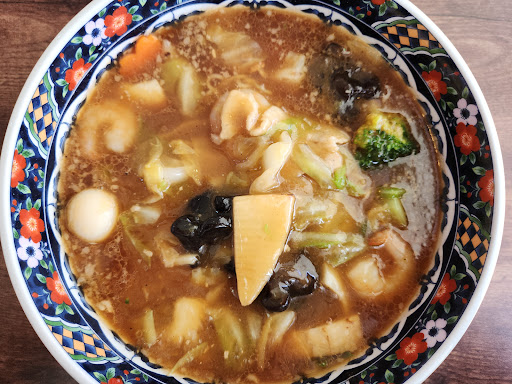 佐渡市民に、佐渡で美味しいラーメン屋は、どこと聞くと名前が上がるファンタオで、塩タンメンをいただきました。エビやいか、キクラゲ等の具材がたっぷり入った一杯は、見た目にも華やかで食欲をそそります。スープは澄んでおり、あっさりとしつつも海鮮の旨味がしっかりと感じられ、最後まで飲み干したくなる美味しさです。店内は、若い女性店員さんが4名いて、元気で明るい接客が印象的でした。迅速かつ丁寧なサービスで、居心地の良い空間が提供されており、また訪...