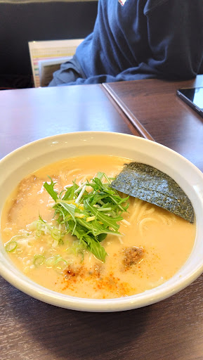 R7.8.16初訪問。 11:30頃に到着したところ、満席で2組の待ち客あり。駐車場ないのに、この混雑ぶりはすごいです。 食券機で購入し、10分ほど待ったところで席に案内されました。 ネットで見た鶏白湯味噌ラーメンを注文。 混んでたのもあるんでしょうが、着丼まで20分ほど。ちょっと時間掛かりすぎですね。 肝心のお味は、とってもクリーミーで美味しい味噌ラーメンです。とっても旨い。何かのメニューを頼んだ人はニンニク無料と書いてありましたが、味噌ラーメンもニンニク無料にして欲しい。 美味しか...
