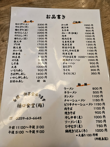 2024/5訪問 今年のゴールデンウイークは9連休! 犬を病院に連れて行くので、我が家は10連休! 主人の激務が終わり、やっと釣りに行ける!と言う事で、今年の佐渡旅行はいつもより早め。 5泊6日の5日目の昼食。 この日は観光へ! と思って出かけたが、佐渡には8~9回来ている。 それも、毎回4泊以上するので見所は制覇している。 が、スマホ片手に優秀な助手席ナビがいい所を見つけた! その後、お昼を食べようと色々と探すも、時間的に混んでいたりしてフラフラ。 そう言えば、あそこに食堂あった!と思い出し、こちらに辿り着きました。 駐車場が狭いので、1台で2台分使わずに、1台分のスペースできちんと止めて頂きたい。 食堂ですが、造りはお寿司屋さんです。 入ってすぐにカウンターがあり、見える範囲のテーブル席は1卓。 奥に座敷がある感じ。 私達はカウンターへ。 腹ペコペコなので(?)生ビール。900円と強気価格。 主人は竹にぎりに半ラーメン。 ラーメンは薄いと言っていました。 私は松にぎりにやまかけを。 お通しはサービスで、中華クラゲときゅうり等の和え物。 やまかけは、普通の赤身のぶつに山芋と刻みのりとわさび。 途中で生ビールをお替りしたら、店員さんに「おぉ」って言われちゃいました。 お寿司は普通に美味しいです。 新鮮コリコリもいいけど、ちょろっと熟成した旨味のある刺身。 しゃりもほんのり温かくて、大将の手捌きも職人さん。 ビールを飲んだので7千円でしたが、普通のランチなら2...