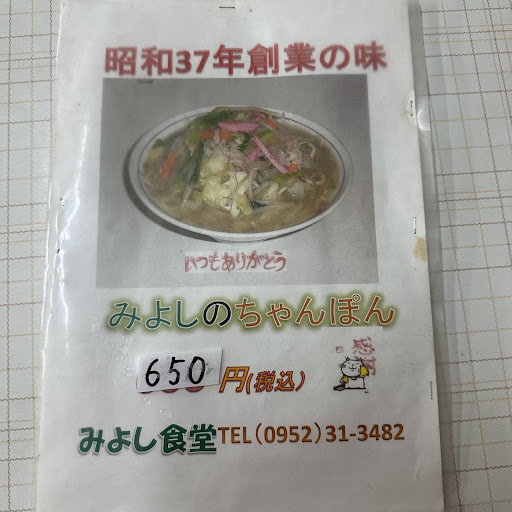 Read more守られるべき古き良き食堂!! 九州運輸局の向かいにある昭和37年創業のこちらの食堂!人で言うと還暦越え! メニューは定食もありますが、今回はおススメのちゃんぽんを!! 注文後しばらくして着丼したちゃんぽんは650円とは思えない量のお野菜!麺は中太のちゃんぽん麺! スープは具材の味がしっかり出ていて、具材とスープを混ぜるとどんどんコクが! スープと一緒に食べるおにぎりも最高です!! 量が結構あるのでお腹空かせて来てください!! 店員さんも素敵な方々でホッコリしました^ ^ ドローカルな町の定食屋さんです^...