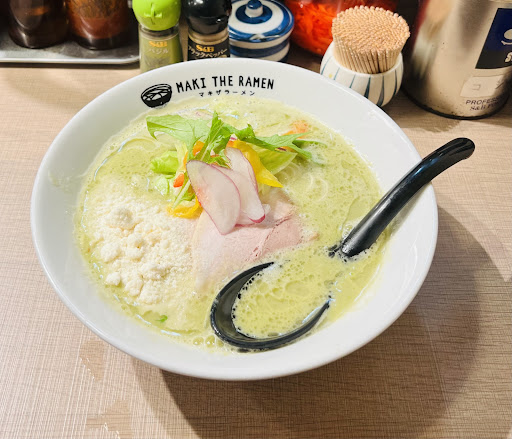 マキザラーメンの クリーミーでベジーな味わいは豚骨ラーメンが苦手な女性にも受け入れられると思います。そして、豚骨ラーメン特有の匂い(香り)はしません。
