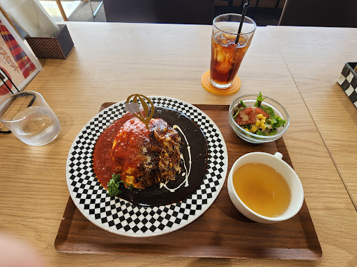 Read moreバルーンミュージアムの2Fでエレベーターで行けます。 平日の12:00〜13:00。待ち時間なし。お客様は8割程度。 窓ぎわのカウンター席、オープンなテーブル席、セミプライベートなテーブル席、ゆったりめです。 ふわとろバルーンオムライスセット、アイスティーとミニソフトを選びました。 10分弱程度でお食事が運ばれました。 全て佐賀産ブランドの素材を使用しているということで安心感と新鮮さ、美味しさがあります。 チキンライス、オムレツに黒カレーとトマトミートソースが半分ずつかけられていました。 温度がちょっとぬるかったのですが、上品に仕上げられていて大変美味しくいただきました。 感じのいいお兄さんたちがきりもりしていらっしゃいます。 客層は、ビジネスマン、ご近所のおじいさん、小さなお子様連れ、マダムといろいろ。 日替わりランチを注文している方が多かったです。 お冷やはセルフサービス。 ビールなどアルコールあり。 お支払い方法はカウンターレジで後払い、キャッシュレ...