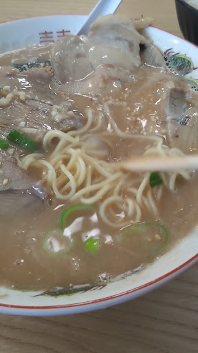 Read more佐賀市鍋島町、国道34号線上の「卸元町」交差点を70m程北上した場所にあるラーメン屋です。店内はカウンター席・テーブル席・小上がり席と完備されており意外と広めです。駐車場は集合店舗の共同スペースが用意されています。現在は食券制となっています。さて「ラーメン」ですが、昔ながらのこってり濃厚な純然たる佐賀系とんこつスープとなっています。麺は中細ストレート麺が使用されており、固さのオーダーよ可能です。具はチャーシュー、海苔、大切りのネギといった構成の一杯です。大盛り対応あり、替え玉制ありとなっています。ラーメンのバリエーションは「チャーシューメン」程度です。このシンプルなラーメンを中心にした定食メニューがこの店では人気です。因みに昔は定食の「とんかつ」が駄菓子屋のソースカツ並みにペラッペラに薄かったのが印象的でした。他にも「イカフライ」と「唐揚げ」の定食が用意されています。その他メニューは「ギョウザ」「焼豚」「おかず単品」「めし」程度と少なめな展開となっています。因みに、卓上セルフの辛子高菜はこの店のマストアイテムなのですが、結構な辛さなので用心して投入しましょう。 こちらのお店は1987年開業のラーメン屋で、佐賀市内では「一休軒」と人気を二分する程の有名店で未だに根強いファンに支えられています。コンビニやファミレスが殆どなかった大昔、深夜に生きる者にとって暗闇に光るラーメン屋の看板がどれ程心と体を温めてくれた事でしょう。「三吉」「丸幸」「丸星」どの店も良い思い出とともにありますね。 2025年5月には経営者も変わり、新体制に生まれ変わっています。一部のメニューが削除される等の変更点はありますが、大概はかつての特徴を引き継がれているようなので安心して来店出来ると思います。肝心のラーメンは、昔に比べ、雑さが消えて丁寧に作られている感じが十分に伝わって来ます。ザラザラの濃厚スープも健在です。...