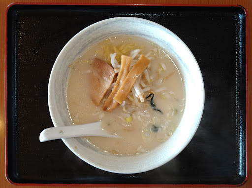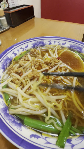 佐賀市光、国道208号線上の「平松」交差点角地にある中国料理店です。やや大きめの店舗で、店内はカウンター席·テーブル席·小上がり席が十分に用意されています。駐車場も敷地内に十分確保されています。さてラーメンですが、今回は「ラーメンセット」の中から「豚骨ラーメン」と「天津飯」をチョイスして頂きました。その「豚骨ラーメン」は、白濁はしているものの豚骨感は弱めのとんこつスープに、中細の緩く縮れた中華麺が用いられています。具は歯応えのあるチャーシュー、メンマ、もやし、ワカメ、ネギといった構成の一杯です。大盛り対応あり、替え玉制なしとなっています。また「天津飯」の方は、ふわとろ系の玉子ではなく、プリっとした食感のやや固めの仕上げとなっており、餡も甘めの味付けとなっていました。ここら辺は好みが分かれる所でしょうね。ラーメンのバリエーションは「台湾ラーメン」「塩ラーメン」「タンタンメン」等々、十数種類用意されています。その他メニューは、単品からセットメニューまで膨大にあるので、それぞれ確認して下さい。メニュー表の写真を上げておきます。 所謂、オール中国系スタッフの中国料理店で、リーズナブルでボリューム満点なのが最大の魅力ですね。開店して数年経つのですが、昼時は繁盛しているようです。味付けの方もどちらかと言うと中国寄りなので、舌に合うかどう...
