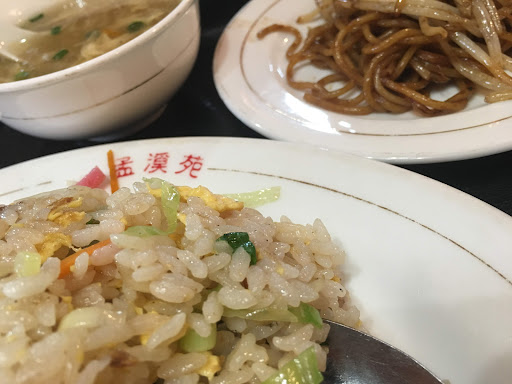 Read more佐賀市大財、佐賀県道30号線上にある「大財三丁目」交差点の角に立地する中国料理店です。3階建てのビルの1階部分が厨房とテーブル席·小上がり席となっており、未確認ですが2階にも団体客用の座敷席が用意されているようです。客席は割と多めなのですが、駐車場は建物に横付けで数台分のみと少なめです。さてラーメンですが、今回は屋号を冠する「孟渓苑ラーメン」をランチセットで頂きました。あっさりとした鶏ガラ系醤油スープが用いられていますが、唐辛子等のピリ辛さが特徴となっています。麺はこの手のお店では珍しい、ストレート細麺が使用されています。具はもやし、挽き肉、ニラとなっており、所謂一般的な名古屋系台湾ラーメンですね。香辛料の使い方、味の付け方が本場中国寄りの一杯でした。大盛り対応なし、替え玉制なし(いずれもメニュー表記なし)となっています。例によって、その他ラーメンのバリエーションやメニュー全般に於いて、かなりのボリュームで用意されています。先ずはセットメニューから攻めるのが得策でしょう。因みに、いつもなら優先的に天津飯をセットのお供に選ぶのですが、こちらの店舗ではラーメン系セットには含まれておらず、残念ながら?「炒飯」をチョイスしました。味もしっかり濃いめで、油多めの印象でした。ランチセットはこれらに漬物風和え物とコーヒー又は杏仁豆腐が付いて、税込み700円という有難い価格設定となっています。 こちらのお店は、元は酒屋だった建物に2004年に開業されています。今でこそ何処ででも見かける居抜き入店型格安中国料理店の先駆けとなるお店ですね。一時は若宮や小城市の方にも支店を出されていたようですが、現在ではこちらのみとなっています。因みに福岡の方にも同名の中国料理店があるようで、関係性等は分かりませんが、同じ華僑フォーマッ...