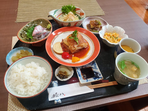 ◯お食事 2024/4/22ランチタイム来店。 豚八ランチのお肉の方を注文。 ふきの煮物は微かに柑橘のようなアクセント、オーソドックスな具材の茶碗蒸しには醤油ベースのあん、マカロニサラダはちょっぴりからしマヨネーズと程よく趣向が凝らされています。 なにより洋風食事のミートパイが戴けたのは予想外でした(佐賀牛とかごしま黒豚)。