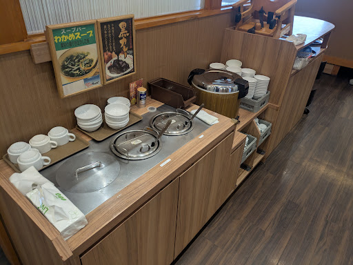 さて、色々と注文をしていく。が、ご飯とワカメスープは中央のブースにあり、セルフとなっている。 今回はソフトドリンク飲み放題と、アイス食べ放題を付ける。しかし、実際アイスは一回だけ食べてそれで十分だった。次回からはアイスはいらないかな。 ご飯のブースにはカレーがある。 カレーは普通に美味しいが、焼肉を食べに来てカレーはなんか違う気もする。ところが、期間限定であるメニューのチーズリゾットが思うほどチーズが多くなかった。メニューに「チーズに溺れる」と言うからよっぽどだろうと思った。そこで、このチーズ少なめのチーズリゾットにカレーをイン。すると!焼きチーズカレーとなり、激ウマになった。アレンジではあるが、おすすめの食べ方だろう。 卓上には、醤油ベースの焼肉のタレや甘口の焼肉のタレ、ミル付き塩、レモンダレ等がある。その他、小袋のコチュジャンがあった。コチュジャンは鉄板なので、常設は気が利いている。