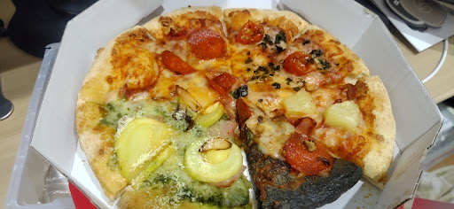 お客様感謝祭とのことで、ドミノピザの定番のドミノデラックスなど3種のピザのMサイズがお持ち帰りは500円で食べられるクーポンが家に入ってたので、有効活用させてもらいました。