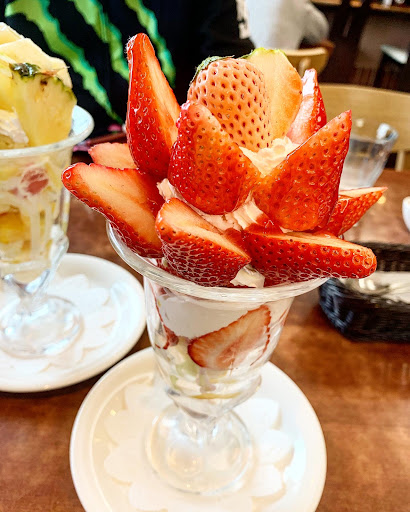 さすがフルーツ屋さんのパフェ。 いちごが多めで他の食べ物でカサ増しされてません。