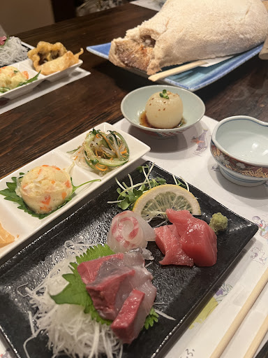 Read more友人とディナーで利用しました。メニューは2時間飲み放題付きのお任せコース¥6,000(税込)のみ。大きな鯛に佐賀牛まであり、コスパ最高です。値段を知らずにお伺いしましたが、お友達とも「このクオリティーでこのお値段?安っ」という感じでした!お伺いした日は、還暦のお祝いをされていたり、特別な日に利用される方が多いのかな?という印象でした。お店の方も気さくに話しかけてくださり、とても感じがよかったです。 県外の方を接待する際などにも...