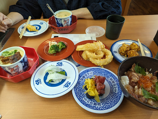 Read moreNice selection of ¥100 sushi. A firm favorite with young kids probably partly to do with the fact your ordered food comes on a bullet train and you can use your plates as coins for a lucky game on the screen with the chance to...