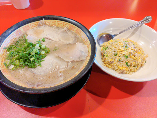 2024.06初訪問。 お店の存在は前々から知ってはいたものの、昼しか営業していない為来れずにいた。 12:15頃訪問したが、既にお客さんで一杯だった。かろうじて一席空いていたのでそこに腰かける。 店内はカウンター席しかなく、確か11席だったと思う。 ちなみに駐車場は店舗前面にあるが、店前は4台程度だが、他の店舗が開いてなければ4台以上停める事も出来る。 メニューはラーメン類(普通のラーメン、玉子ラーメン、チャーシュー麺)の他、ご飯類(白米、炒飯、半炒飯)、替え玉、辛味噌、ビール、ノンアルコールビールがある。結構シンプルだ。 尚、麺の茹で加減は指定出来ない。 この日はラーメンと辛味噌、半炒飯を頼んだ。提供時間は普通かやや早め。 マスターはスキンヘッドにピアス、手の甲にタトゥーが入っていて、おしゃれでファンキー。奥さんらしき一緒に働いている女性も金髪で揃ってファンキー。見た目は五、六十くらいかと思ったが見た目より若いのかもしれない。 客層は男性が多く占めるも、女性客も見受けられた。それも単独ないし女性二人組などだったので、性別関係なく人気なようだ。 肝心のラーメンだが、スープはまろやかで乳化しており優しい。香りは豚骨だが、臭みはさほど強くない。具は大きめの薄切りチャーシューが四枚、ネギの千切り少々。チャーシューが大きいのでラーメンどんぶりを覆う程。普通でこれならチャーシュー麺はどんだけチャーシューが入ってるのか気になる所。ラーメンどんぶりは少々小ぶりだが、食べてみると丁度良い。 食べ終わるとどんぶり底にドロリとしたものが残るが、おそらく骨粉と思われる。本物の豚骨ラーメンである事の証明だろう。 一方半炒飯は、ちょこっと油っこいものの、味はしっかりしていて旨かった。量も丁度良く、ラーメンとセットなら黄金比と思われる。 注文の品と一緒に置かれる伝票を持ってレジカウンターで最後に支払いをする。福岡と比べると、これだけ食べても1100円は安いと思うが、佐賀という地域性を考慮すると相場なのかもしれない。 夕方もやっていればよく行けると思うが、昼しか営業していないので、昼は仕事している為、当分来れないだろう。 そういえば、他のお客さんは玉子ラーメンを皆頼んでいた。佐賀ラーメンはやはり生...