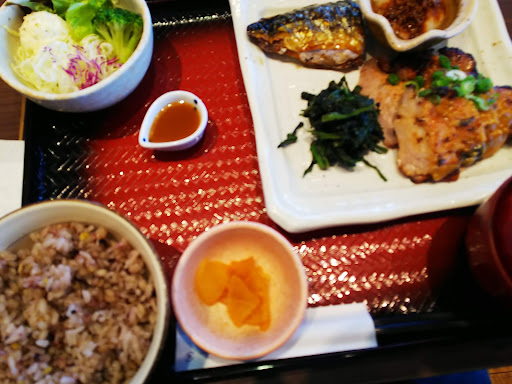 Read moreさばの炭火焼きと肉じゃがの定食+たっぷり野菜の麦みそ汁{変更オプション)+ミニ香味からあげ+納豆 糖質制限・野菜多め・塩分制限・血糖値が急激に上がらない食べ方など、食に気を使う人が利用するのが大戸屋さん。 出汁を取るのも鰹節と昆布を使い、店内での食材のカット。手間が掛かってます。