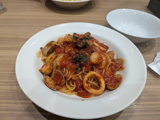 Read more海の幸ペスカトーレのLサイズをいただきました。 九州では佐賀長崎大分熊本にしかないようです。そして佐賀にはここにはないとのこと。 ランチセットや推しセットがありました。食べたいパスタがなかったので単品で注文しました。 注文して5分もまたずにやってきました。 Lサイズの名の通り大盛りでした。 うふふカフェの大盛りより1.5倍ありそうでした 熱々ですぐ食べると口の中を火傷しそうでした。 味は美味しかったです 私は、パスタではうふふカフェのトマトソースパスタが一番と思っていますが、コスパを考えるとポポラマーマが今のところ一番だと思います お冷はセルフサービスでした。 値段はうふふカフェと同じくらいですが、量...