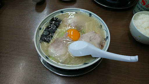 話を戻しましょう。 佐賀ラーメンは生卵入りがデフォルトですが、自分は生卵は入れません。ここは替玉も大盛りもないので、普段は控えているラーメンプラス炭水化物であるご飯か稲荷をつい食べてしまいます。 あっさり豚骨スープで塩加減が絶妙。豚骨塩ラーメンと言っても良いくらい。麺は佐賀ラーメンらしくやわ麺。これがスープと合っています。チャーシューも味が濃くなくて食べやすいですね。メニューにないオニギリがあるようなので、次回のお楽しみにしましょう。 ご馳走さまでした。