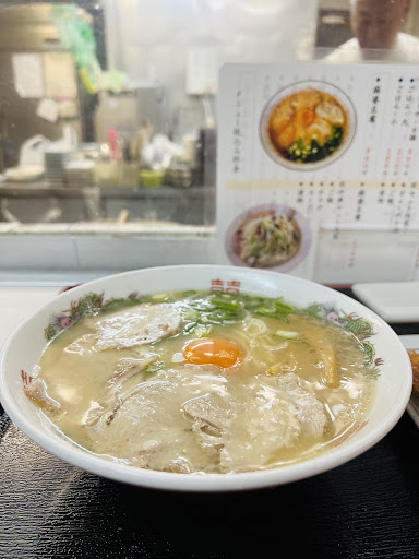Read more佐賀市高木瀬町、国道263号線沿いにある「ゴールドラッシュ」高木瀬店の駐車場敷地内に存在するラーメン屋です。店内は厨房を囲むカウンター席をメインに、小上がり席も3卓程用意されています。またパチンコ屋の敷地内だけあって駐車場には困りません。さて「ラーメン」ですが、やや薄めであっさり味の佐賀系とんこつスープとなっています。麺は中細ストレート麺が使用されています。具はチャーシュー、メンマ、ネギといった構成の一杯です。典型的な佐賀系ラーメンの趣で、安心出来る味わいです。生玉子のトッピングがよく合いますね。大盛り対応あり、替え玉制なしとなっています。ラーメンのバリエーションは「卵入りラーメン」「チャーシューメン」程度ですが、「チャンポン」「担々麺」「焼そば」等の麺類メニューも用意されています。その他「麻婆豆腐」「餃子」「焼きめし」等と言ったサイドメニューやセットメニューも提供されています。因みに現在は朝9時からの営業されており、がっつり朝ラーが頂ける有り難いお店となっています。 1995年頃に開業したこちらのお店、元々は佐賀系ラーメン屋の始祖である「一休軒」を源流としているようです。なんだパチンコ屋併設のラーメン屋か、と思って入ったら見事に裏切られます。因みに佐賀市大財に2号店を展開されています(佐賀市久保田町に3号店も...