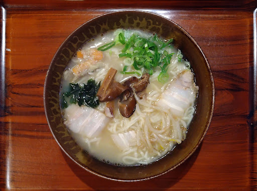 佐賀市巨勢町、佐賀県道333号線沿いにある喫茶店兼中華麺専門店です。一昔前の立派な喫茶店のような佇まいで、蔦の絡まる特徴的な建物となっています(しかも年々蔦の侵食が進んでいます)。店内はやはり昭和の喫茶店風のレイアウトで、小さなカウンター席・数種類のテーブル席、既にディスプレイと化した座敷席が見受けられます。駐車場は店前に数台分用意されています。さて「らーめん」ですが、かなりのあっさり、豚骨感控え目な白濁系、佐賀系とんこつスープとなっています。麺は中太ストレートでやや柔麺仕上げ、具は小さめのチャーシュー、ワカメ、もやし、牛蒡&人参天、メンマ、ネギといった構成の一杯です。豪華な具材の味も相まって、和風豚骨ラーメンといった趣が感じられますね。大盛り対応あり、替え玉制なしとなっています。ラーメンのバリエーションは幾つかあるようですが、こちらのお店は「らーめん」より「清涼麺(チンリャンメン)」の方が圧倒的に有名で人気があります。青海苔が練り込まれた緑鮮やかな中華麺を冷たいつけ麺風に頂く「清涼麺」は長い間愛されており、佐賀のソウルフードと呼んでも過言では無いでしょう。お薦めです。その他のメニューはコーヒーやピザ、ケーキ等々、普通の喫茶店メニューが展開されています。因みに2023年6月再訪時には「カレーラーメン」が新たにメニューに加えられていました。次回にでも試してみたいと思います。 こちらのお店、創業1953年と謳っておられますが、実際には先代が開業したラーメン屋「北京千両」から数えての事です。この「北京千両」こそが佐賀で一番最初に開業したラーメン屋とされており、先代が編み出した「清涼麺」は2代目へと受け継がれています。かつては佐賀市白山にあった「北京千両」ですが、30年程前に2代目により巨勢町へ移転し「シャローム」へと屋号...