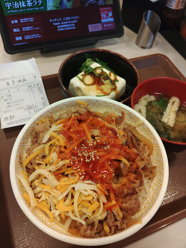 Sukiya a very widely known chain of stores in Japan. Offers cheap meals with a generous amount of serving. This branch is on one of the main roads so its accessibility and parking are always there. Ambiance of the store is okaaay for me. Not so grand and not so cheap. So food, wide variety of food but focuses on rice bowls and combinations and sets. Taste is 3 out 5 for me. Its cheap...