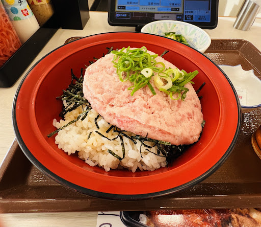 Read more予想の倍旨かった『まぐろたたき丼』並盛と連食した『にんにく牛カルビ焼肉丼』並 3年振りのすき家では初めて連食しました、食べた後に前回の自分のレビューを見ると似た様な『にんにく牛丼』を食べていました。しじみ汁まで被ってしまい、やはり本能で注文してる自分は似たものを注文するんだと改めて感じました。 ・まぐろたたき丼 ですがまぐろの味が予想以上に旨かった。 人気の回転寿司と同じレベルでしょうが、悪い点は見つかりませんでした。別皿でわさび醤油を作って満遍なくかけて食べました。オクラのサイドメニューと合わせて食べるとマッチしてました。