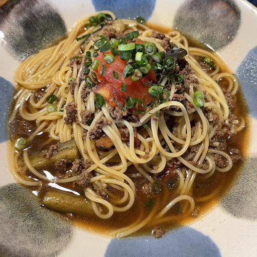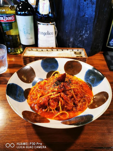 さてパスタはスパゲティより1段細めのスパゲッティー二に見えます 程よい茹で具合です アラビアータのソースには味噌と書いてありましたが辛さ増しをお願いしたせいか私の舌には味噌を感じることは出来ませんでした ニンニク増しをお願いした分は常識の範囲の優しめの増やし方で私が期待した量ではありませんでしたが 少しだけニンニクを感じました 最初は辛くなく後から来る辛さでコメカミから汗が吹き出してきました...