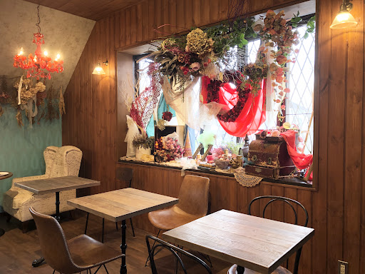Read moreお席は少なめですが平日の13時ごろに行ったところゆったりとした時間を過ごすことができました。1階は花屋、2階はカフェをされています。まず1階から入り口を入ると目の前にドライフラワーが広がり、さらにお花の良い香りが漂っています。左に行くと階段があります。上る途中に飾りがあり、2階もオシャレに飾ってありました。私は奥のソファー席に座りました。ソファーに座ってカフェで過ごしたのは初めてだったので優雅なカフェタイムだったと感じてます。メニューはランチからカフェメニューまであり、カフェメニューのフォンダンショコラ(650円)とチーズスフレのストロベリー(700円)を注文。さらにドリンクセット(+150円)も付けました。フォンダンショコラは抹茶味、黒ごまソースとバニラアイス(きな粉のせ)、生クリームでいただきます。チーズスフレはストロベリーソースをかけてストロベリーアイスとともに。カフェメニューはオシャレで...