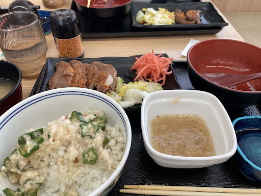 昼食に利用。行く前は、牛丼の予定でしたが…入り口の「タン定食」の写真を見て美味しそうなのと、手頃感から、主人も私も注文。本当にガッカリでした。 メインのタンは、一口口にすると、味は、しないし焼きがあまいせいか、食感がグニャとして気持ち悪い。私はタン8枚を注文したので、4枚注文の主人に半分食べて貰いました。タレ(玉ねぎが入った塩味の物)は塩辛く使えない。タンの横の付け合わせの白菜(何故に白菜??)もこれまた塩辛。結局七味(かな?)をタンに振り醤油を少し垂らして食べました。お味噌汁は、味は、ソコソコだが具無し、ご飯は、麦飯のつもり(白ご飯が、下に、上に麦飯を乗っけた物だった)のご飯も美味しく無くて残した。トロロとオクラをご飯に乗せて食べるのだろうが…トロロには、醤油じゃなくて、つゆ的な物があるといいと思います。つゆが有ればオクラは要らないです。主人と「あ〜やっぱりタンを食べるなら、専門店の◯ぎしだね。牛丼屋では、やはり牛丼食べるべきだった」と話しました。今後もタン定食続けるならば、もっと研究して下さい。美味しいのを出して下...