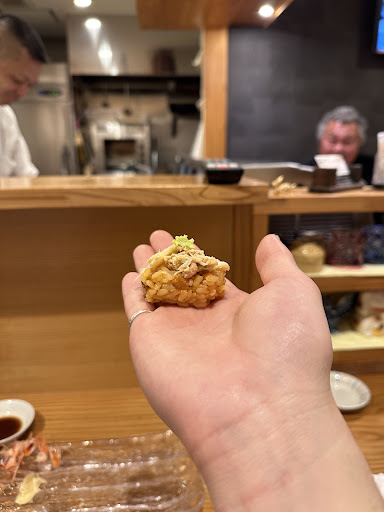 Read moreこじんまりとしてて、常連さんが多いように感じました。 内陸のお店ですが、美味しいお魚を使ったお寿司でした🍣 お寿司が出てくるまで時間がかかりそうだったので、だし巻き玉子(600円)と本日のおすすめの沢ガニの素揚げ(900円)をオーダー追加オーダーしました。だし巻き玉子は冷たかったです。沢ガニの素揚げはビジュアル的にも楽しめました。 今回は電話で予約した際に、おまかせ握り(2,300円)をお願いしていました。前菜3品と11貫が出てきました。