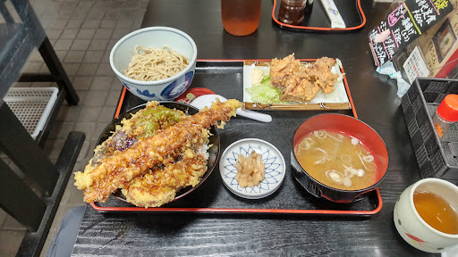 穴子野菜天重 冷やし小そば 唐揚げ3個