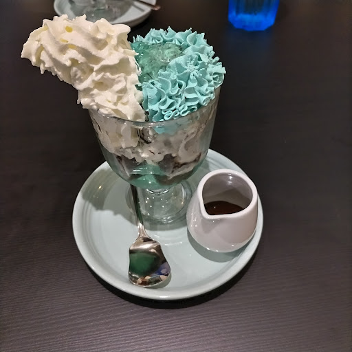 先ずは① ツイッターでチョコミントパフェの画像を発見した事が発端で、それを目当てに食べに伺いました。時間帯はランチタイムでしたが、パフェのみ頂きました(理由は後述)。綺麗に盛り付けられたホイップクリームが色鮮やかで、観て食べて楽しむ事ができました。お値段もそれほど高い設定ではなく、納得の行く仕上がりだと感じました。