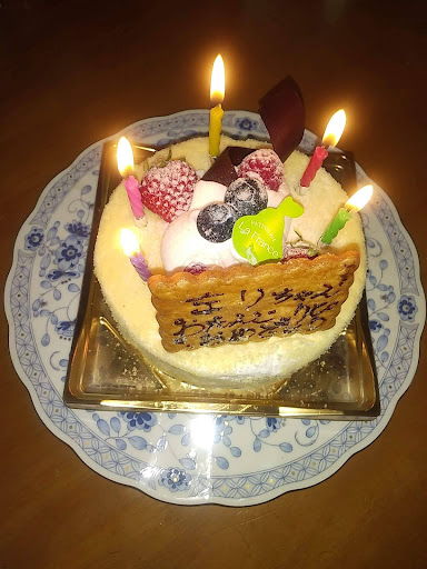 Read more隣接した市も含めて人気のケーキ屋さんが沢山ある地域ですが、季節のフルーツをアレンジしたケーキが美味しいお店、という私個人の勝手な位置付けで大好きなお店です。入店すれば甘い良い香り、ショーケースを一目みればカラフルなケーキにテンションが上がること必須。全体的に甘さを押さえてあったり、濃厚なものから軽く食べれるものまでバラエティに富んでおり、味に変化をつけられるせいかスイーツが滅茶苦茶得意ではない私でも二個三個ペロッと行けます。お店の名前にもなっているラ・フランスのケーキもありお勧め♪ ケーキのほか、季節に応じたモチーフの可愛い入れ物に入った焼き菓子セットはプレゼントにぴったり。もらった方も入れ物が再利用できて嬉しいはず。手土産が必要な時は地元をネーミングした御菓子もあるので私はそちらを選びます。ソフトクリームもあり。イートインもありますが、今はコロナで閉鎖中。コンビニと同じ敷地内にあり駐車場も広く行きやすい。 赤ちゃん連れでしたが子供をショーケース越しにあやしてくれたり、沢山買ったので箱を二つにする時もこうしていいかとご提案下さったりと店員さんもとても感じの良い方。 ケ...