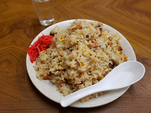 注文したのは、チャーハン850円+大盛150円。 注文して20分くらいしての着丼です。 前もそうでしたが、メチャクチャ凄い量です。 しっとり系で、チャーシューとナルトを具にしてます。 ちょっと歯ごたえのあるチャーシューです。ライスに多少のお焦げがあります。 目だった美味しさはありませんが、ほっこりするチャーハンです。