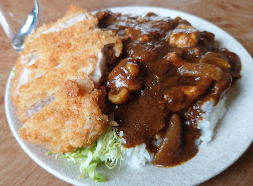カツの肉質はふわっとしているが、味付け自体はとても薄味。なので物足りない方は卓上のソーを活用しませう。カレーの肉は豚肉で肉多め。ルーは独特なスパイシーさがある。肉も多いし御飯も多いために相対的にルーが少く感じる…が、肉自体は沢山入っているので無問題。最後は満腹による多幸感に包まれながら威力偵察を終えるに至った。