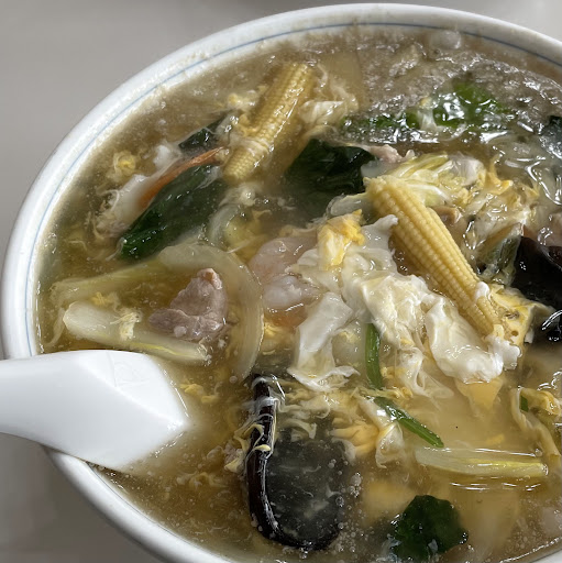 ミソソバ税込980円注文。 ジャージャー麺みたいなやつです。 具も麺も予想以上に多くてかなりボリュームあり! 甘辛の熱々あんかけ肉味噌スープに ツルッとしたストレートの麺がバランスよく合わさってとても美味い!!! 途中味変でテーブルにあるラー油を少々かけると、かなり辛くなって更に美味しい。