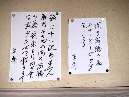 国道16号は昔から頻繁に通っているのだが、かつやの陰になっていて気付かなかったお店。信号待ちで発見し早速入店。まず目に入ったのは2枚の張り紙。いずれも豚肉高騰の為、チャーシューや肉の量が減る旨のお詫びの告知。第一印象はとても良心的なお店。その上気さくで話し好きな老夫婦の暖かい接客で、実家の様な居心地の良さ。以降、仕事帰りに連日の訪問。 私が食べたメニューの感想を個人的なランキング形式で以下に記します。 1位【ねぎつけちゃーしゅー麺】今まで食べたことのないチャーシュー。薄切りの大きな肩ロースにスープが良く絡む。麺も歯応えがあり喉越しが良い。 2位【チャーハン大盛り】一見雑な盛り付け。だがラードとオタマで固めていないのでパラパラの食感。少々強めの塩味が、仕事の後の疲れた身体に染み渡る。 3位【カツカレー大盛り】揚げたての大きなカツはサクサク。ルーの粘度も丁度いい。 4位【オムライス大盛り】具材は少なめだがケチャップの味が濃く満足感大。卵もトロトロ。 5位【焼肉定食大盛り】やはりロース肉よりバラ肉!量もタップリ。タレはオーソドックス。 6位【鶏のからあげ定食大盛り】パリパリの皮にジューシーなモモ肉。大きくて量も多い。 7位【カツ丼大盛り】揚げたてのカツにトロトロの卵。ただ、この店は他に食べるべきものが多いので、優先順位は下がる。 8位【ロースカツ定食大盛り】揚げたてで美味しいが、ウスターソースしかないのが残念! 番外ですが御飯が美味しい。高齢者のお店の場合、店主の好みに合わせて柔らか過ぎの所が多い。だがここはチャーハンに使う為、硬めに炊いているそうです。 訪問する度にいろいろな話をしましたが、昭和48年創業で56年に現在の場所に移転、半世紀以上御夫婦で続けているそうです。御主人は75歳「あと5年位かな〜」とおっしゃっていました。73歳の奥様は帰り際、雨の中わざわざ外に出て来てバイクのシートとハンドルを拭いてくれました。後継者がいないのは残念ですが、健康に気を付けて無理をせず、末長く続けられることを願っています。 P.S.先行して13本の動画を載せてあります。そち...