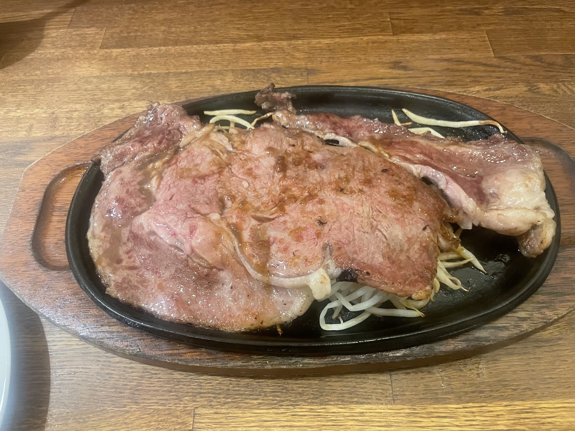 だけど少し意地悪な気持ちで大き目のステーキを注文、 焼き手の力量を感じてみたかったからw こう注文するとだいたいほとんどのお店は ゾウリのようなウェルダンを出してくるのですが、 ここはギリそうならないクォリティ! この金額でこれならこっちも満足できました(^^)