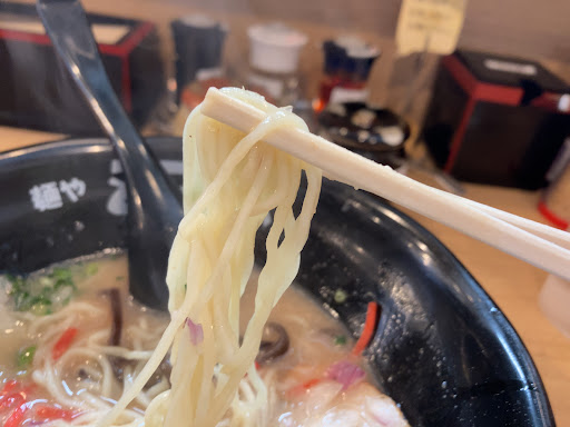 麺はいわゆるとんこつに合う麺ですね 通常であれば替え玉と行きたいところですが、 このラーメンにはライスが合うと思います