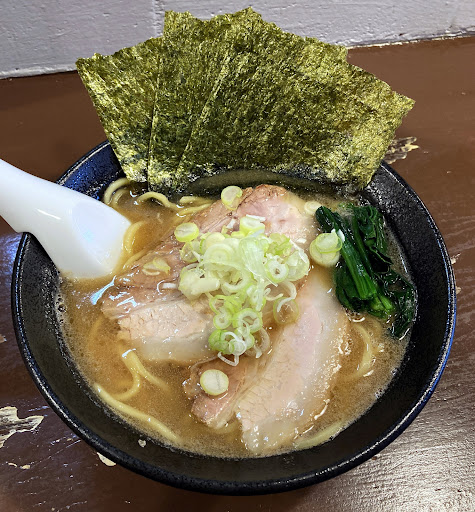 6月27日11時半 三度目の訪問 先客6人後客5人 豚骨ラーメン850円大盛200円チャーシュートッピング250円 ラーメン150円値上げですね仕方ない 8分程度で丼着 チャーシュー4枚、葱、海苔3枚、小松菜 スープは前回より濃厚に感じた、麺は家系にしては細目です。 チャーシューは前回より柔らかく食べやすい 奥さんの接客が丁寧ですね 「暑い中ありがとうございます」と帰りも「体調にはお気をつけ下さい」 豚骨以外も味わいたい 再訪問予定です