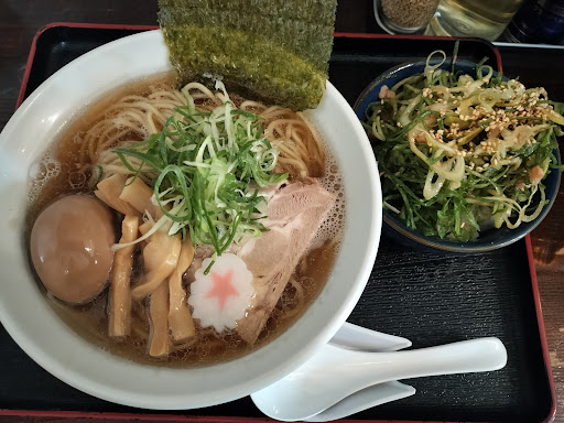 Read more魚介豚骨濃ラーメン・魚介豚骨濃つけ麺・あっさり煮干し中華そば・九条ネギ飯を頂いたことがあります。 魚介豚骨濃ラーメン・魚介豚骨濃つけ麺は、良くある味で、特に代わり映えもなく、美味しく食べられます。 ここのお店の一押しは、あっさり煮干し中華そばだと思います。 どのラーメン・つけ麺も全体的に味は濃いめで、私にはしょっぱく感じますが、あっさり煮干し中華そばのスープは、5本の指に入るくらい美味しいスープでした。ベースは煮干しみたいですが、昆布も入っていると思われ一番最初に口に入れた時のインパクトは、かなりの物でした。色んなお店のあっさり系を食べてきましたが、ここまでのスープには、早々に出会えないと感じた逸品です。麺は細麺ストレートで、メンマ・海苔・チャーシュー・九条ネギ・ナルトが乗っています。スープのインパクトが強くて、麺は腰がある麺だというくらいで、印象が弱かったです。 でも、満足度が高いことから、とても美味しいラーメンだったと言えます。 他のお店には、中々無い九条ネギ飯もネギの風味が強く、動物性のものに頼らなくても十分なサイドメニューになってました。 定期的に通いたくなるお店です。 駐車場は5台くらい停められるところが、道路を隔てた向かい側にあります。 券売機で先に購入するスタイルで、親子で営業しているようです。 最後に食べ終わって、お店を出るときにおかあさんが、毎回外までお見送りに来ていただける姿は、気持ちがあったかくなります。 駐車場とは逆向かいのローソンに車を停めて食べに来ているモラルの掛けた人とを見...